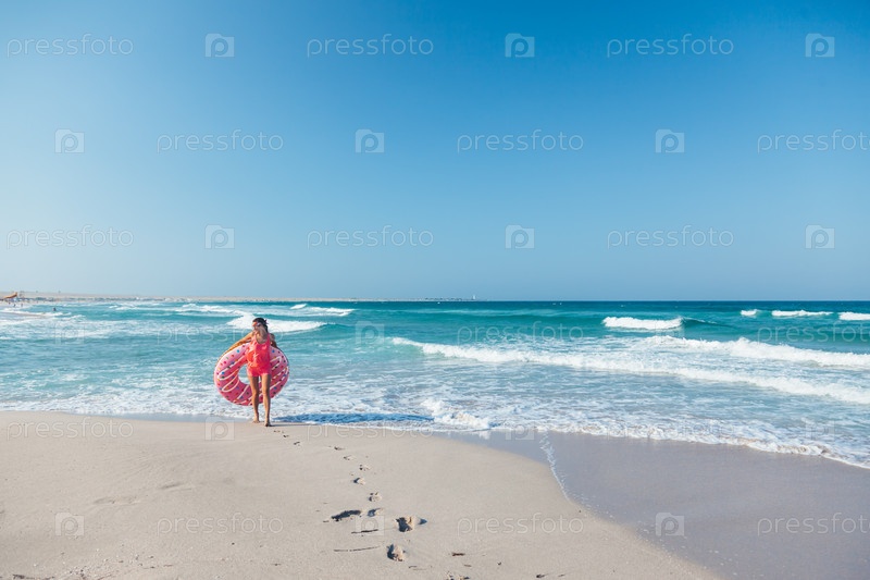 Девушка с пончиком на пляже