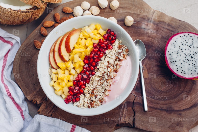 Чаша с тропическими фруктами и смузи