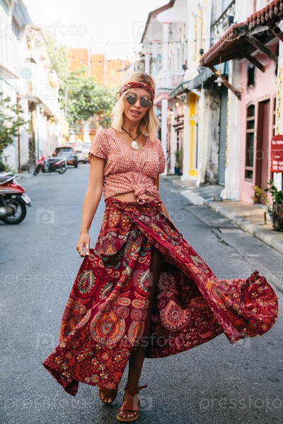 Девушка, идущая по улице города