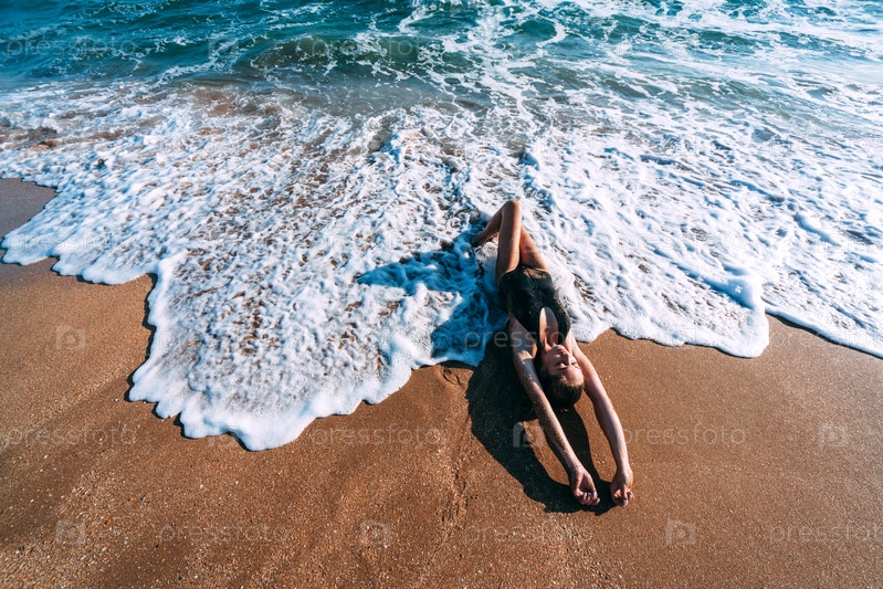 Отдых на песке на берегу моря с волнами