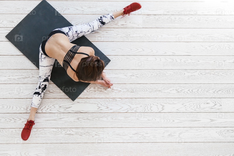 Женщина делает фитнес-упражнения на полу