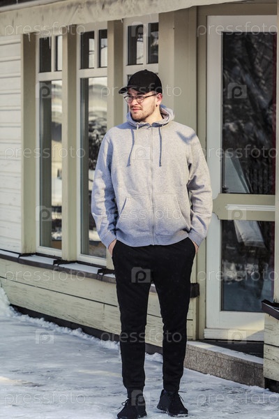 Молодой человек в очках перед магазином