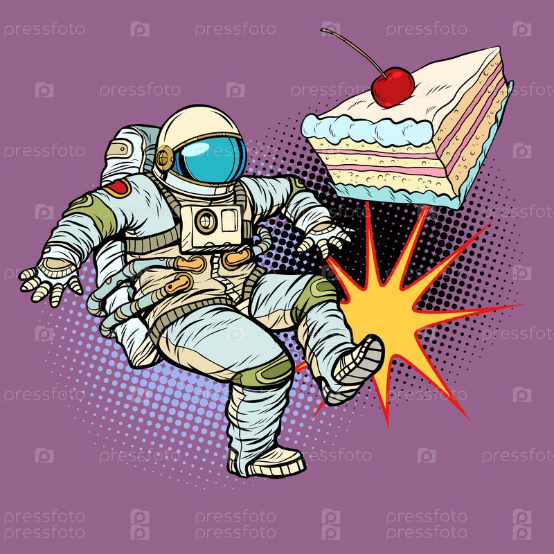 Астронавт пинает ногами кусок пирога