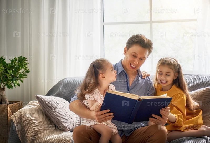 Отец читает книгу дочерям