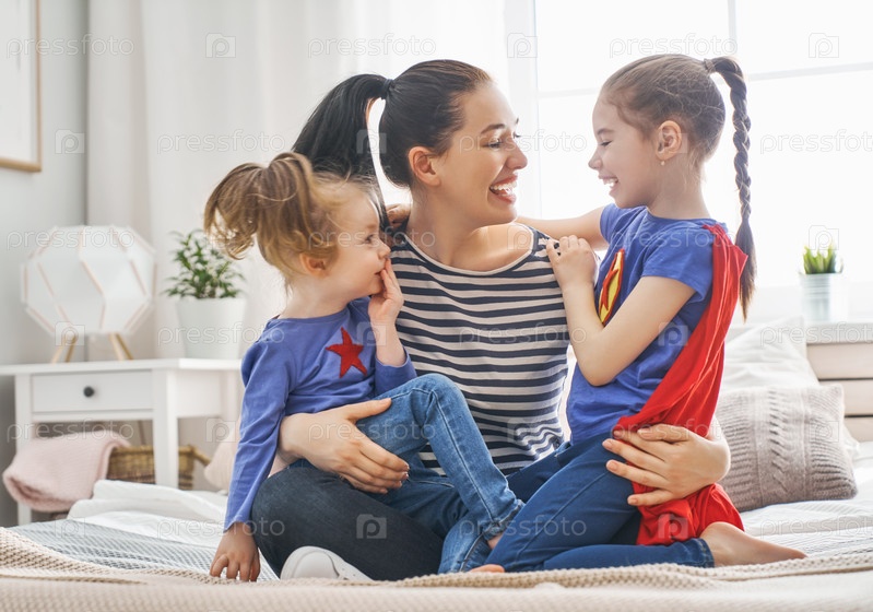 Мама и ее дочери играют в супергероев