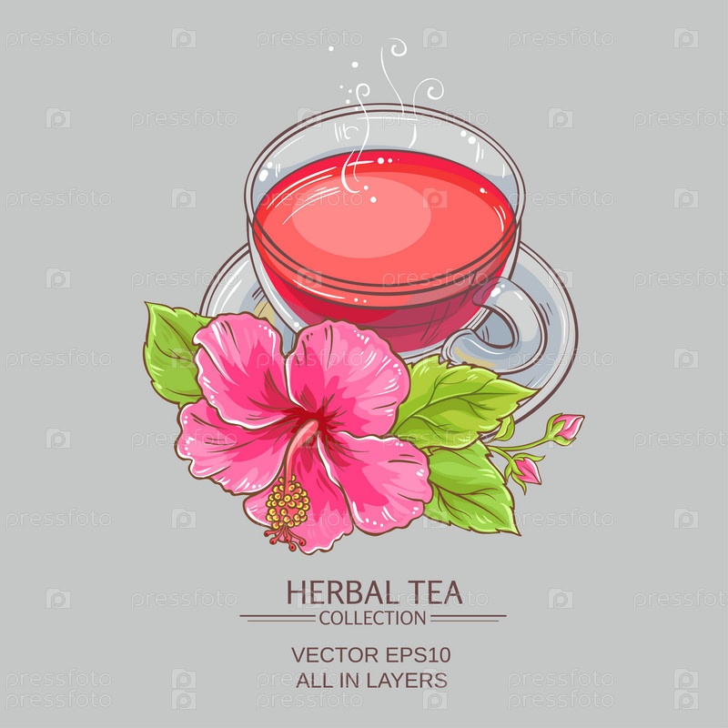 Чашка чая гибискуса на цветном фоне