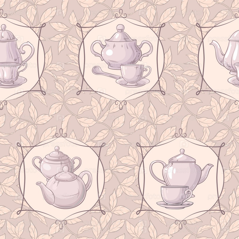 Бесшовный фон с чашкой чая и чайником
