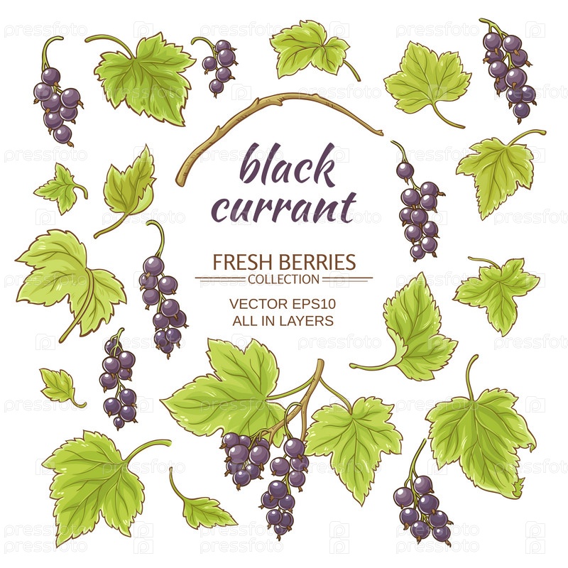 Черная смородина набор на белом фоне