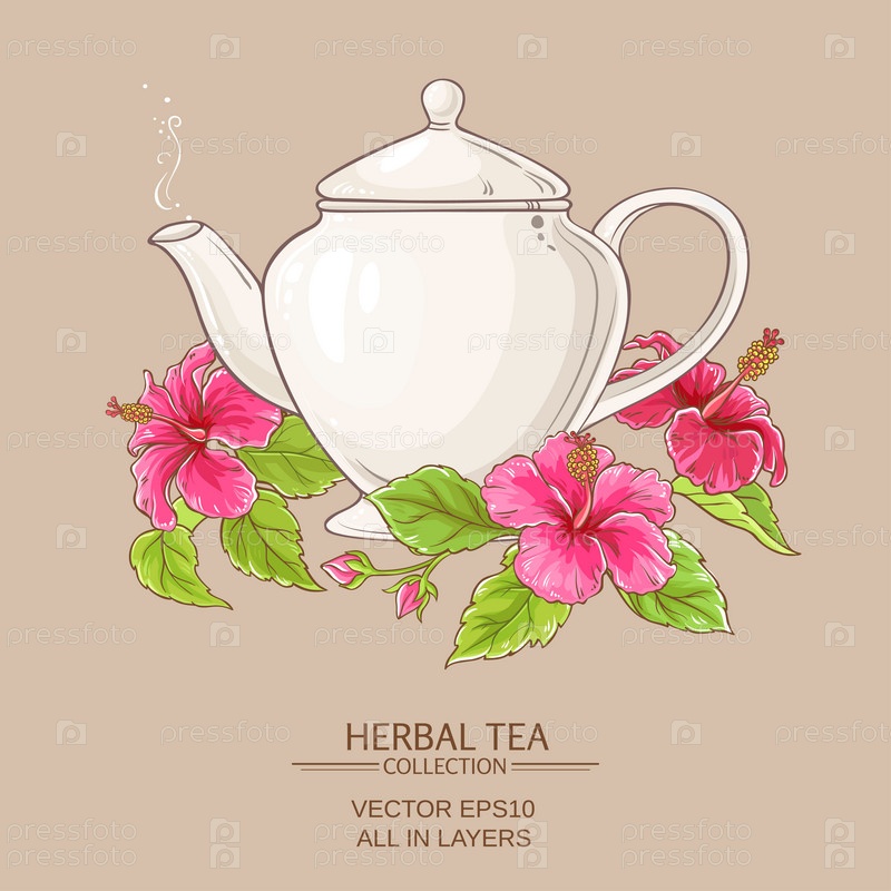 Гибискус чай в чайнике на цветном фоне