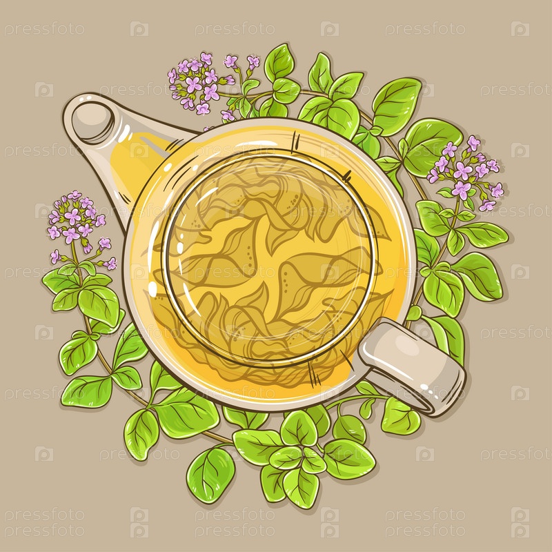 Чай с душицей в чайнике на цветном фоне