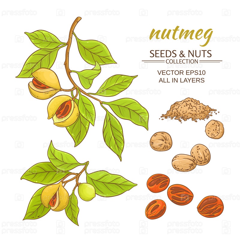 Мускатный орех набор на белом фоне