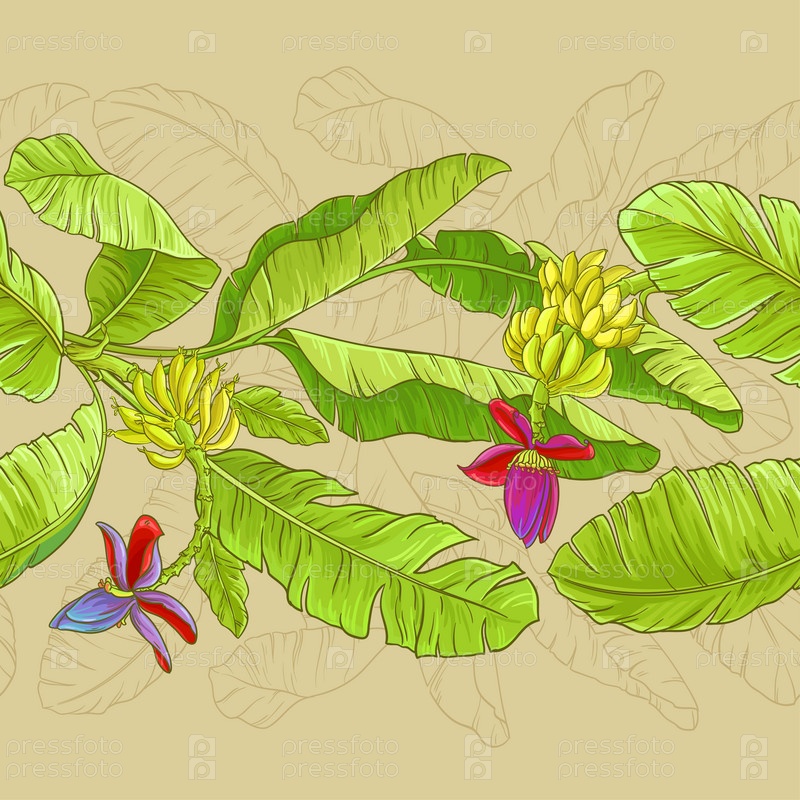 Растение банана узор на цветном фоне