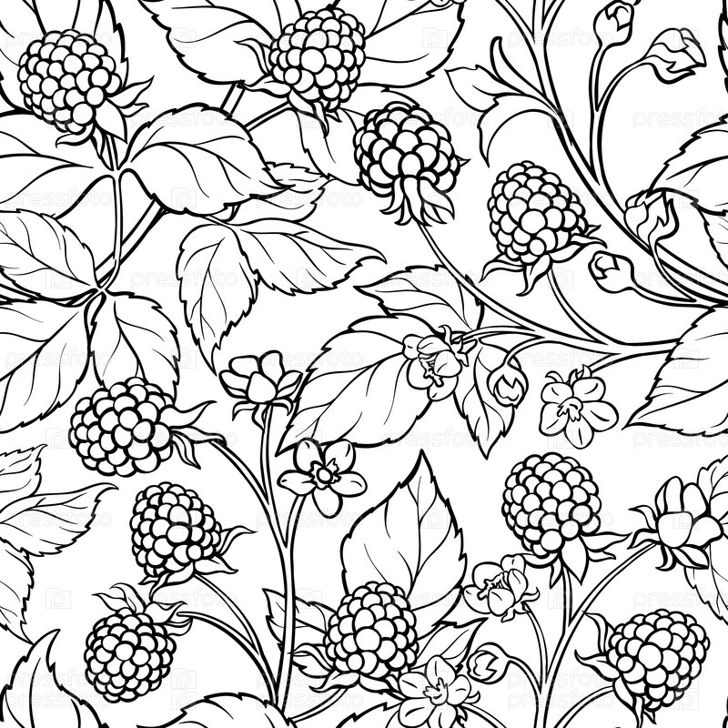 Ежевика ветвь бесшовный узор на белом фоне
