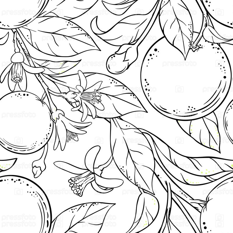 Апельсин ветви бесшовный узор на белом фоне