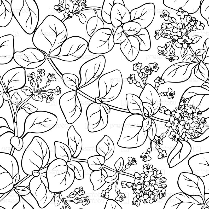 Душица трава бесшовный узор на белом фоне
