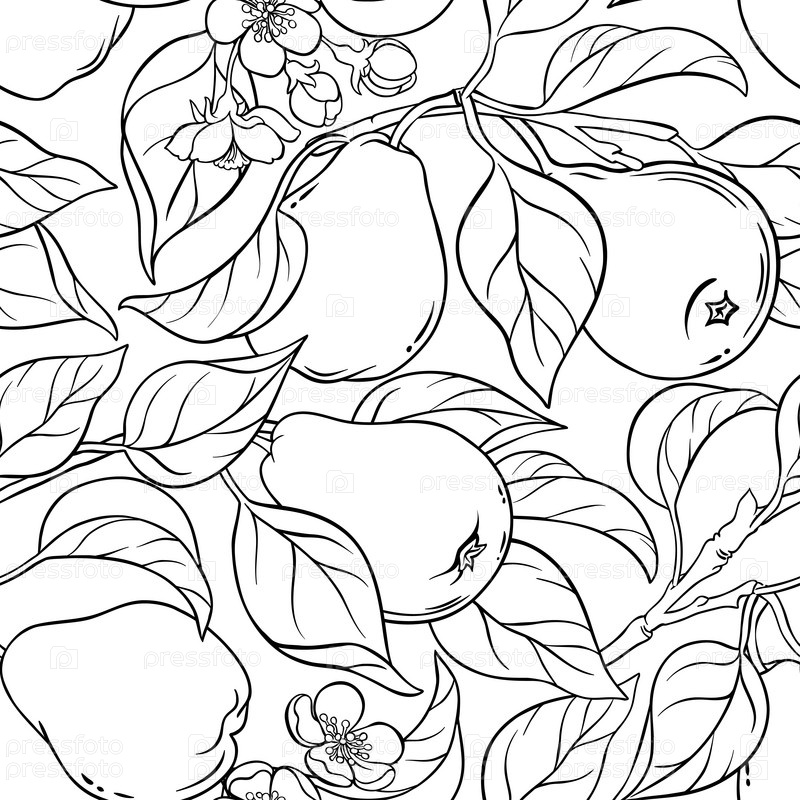 Груша ветви бесшовный узор на белом фоне