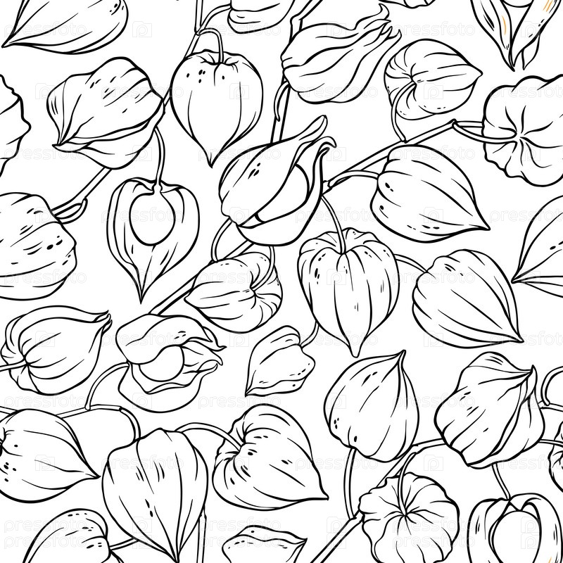 Физалис ветви бесшовный узор на белом фоне