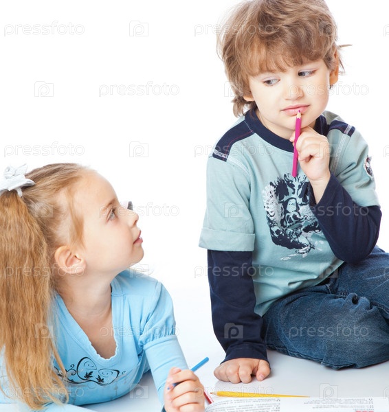 Девочка и мальчик на белом фоне