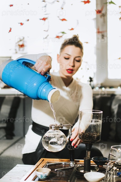 Красивая девушка заваривает чай