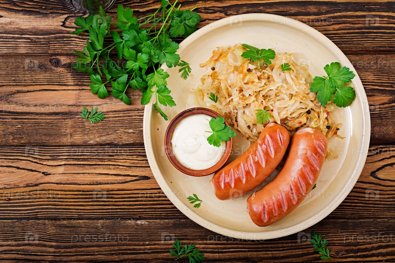 Тарелка колбасы и квашеной капусты
