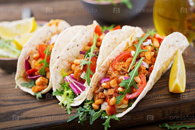 Мексиканские тако с говядиной, фасолью в томатном соусе с сальсой