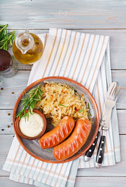 Тарелка колбасы и квашеной капусты
