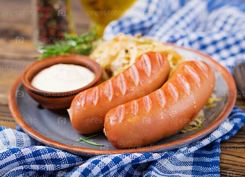 Тарелка колбасы и квашеной капусты. Традиционный Октоберфест
