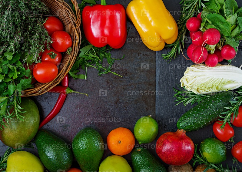Набор овощей и фруктов. Детокс диета. Вид сверху