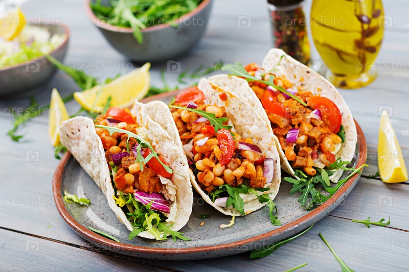 Мексиканские тако с говядиной, фасолью в томатном соусе