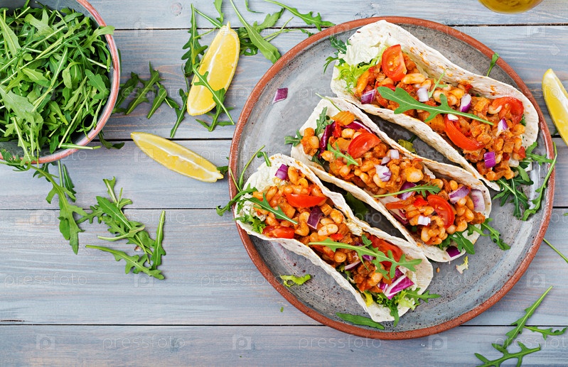 Мексиканские тако с говядиной, фасолью в томатном соусе