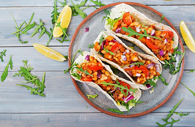 Мексиканские тако с говядиной, фасолью в томатном соусе