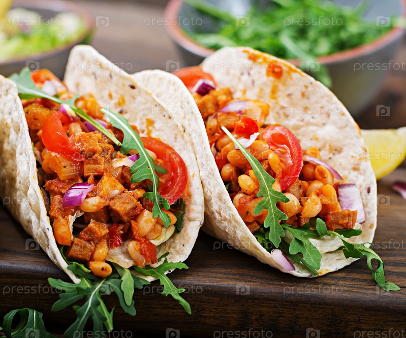 Мексиканские тако с говядиной, фасолью в томатном соусе с сальсой