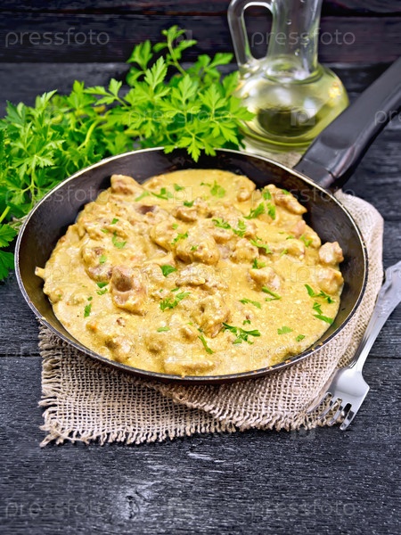 Мясо тушеное со сливками на мешковине