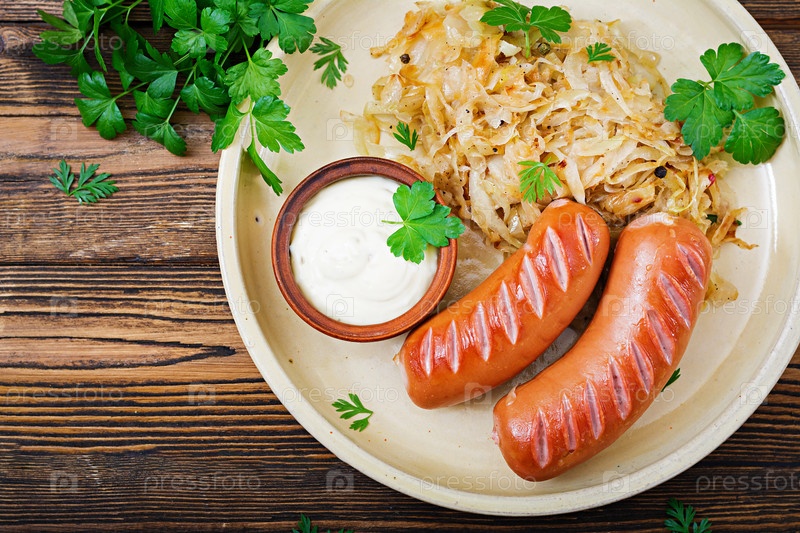 Тарелка колбасы и квашеной капусты
