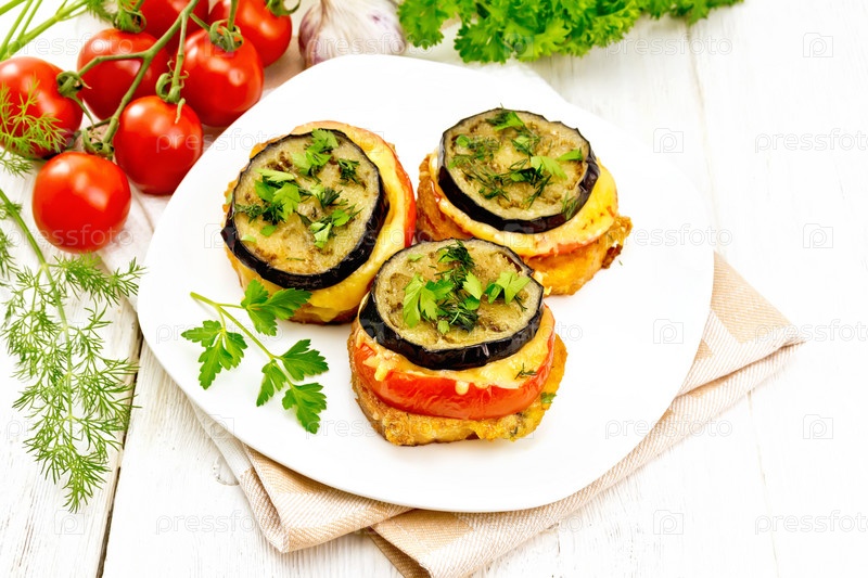 Закуска из баклажанов и сыра в тарелке на столе