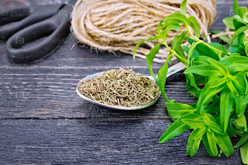 Чабер сухой в ложке со шпагатом на доске