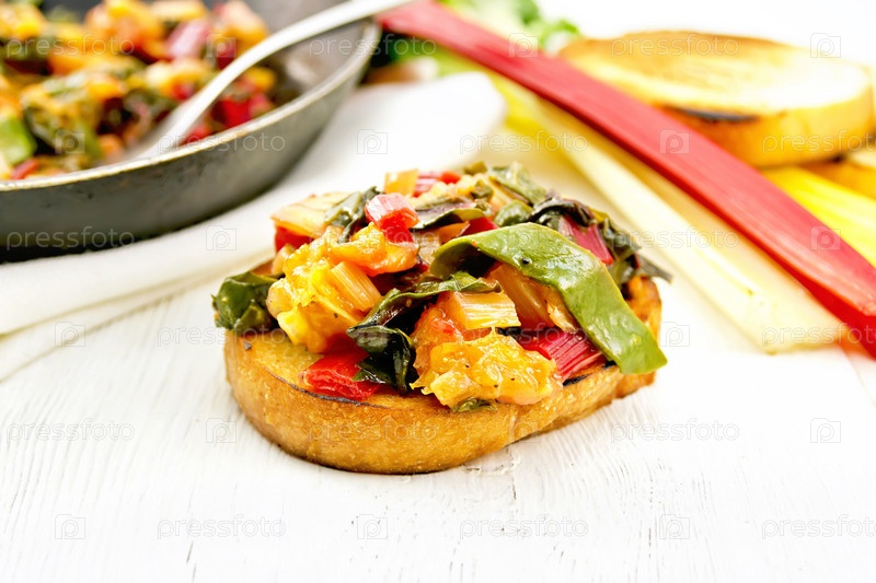 Брускетта с листовой свеклой и апельсином на доске