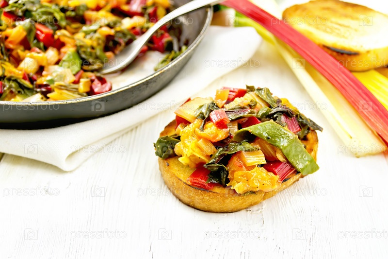 Брускетта с мангольдом и апельсином на доске