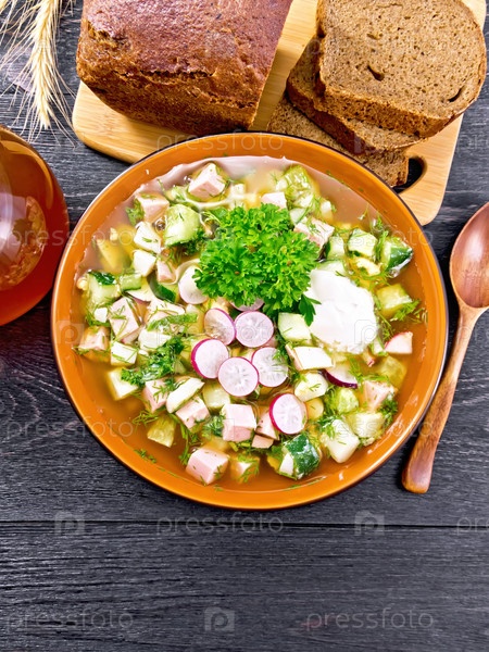 Окрошка в чаше на доске