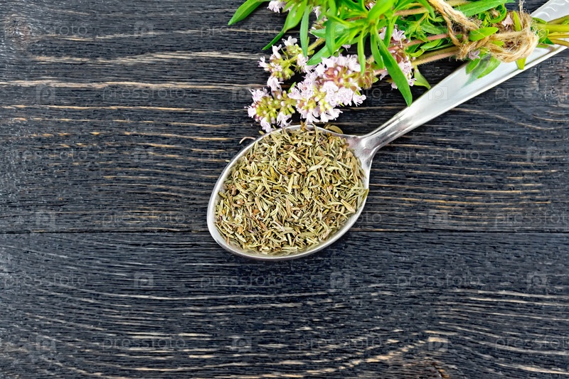 Тимьян сухой в ложке на доске