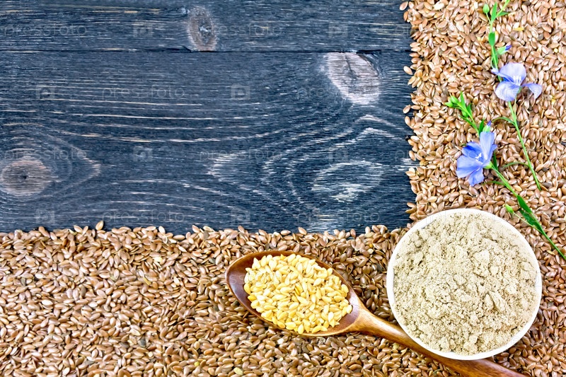 Мука и семена льняные на черной доске