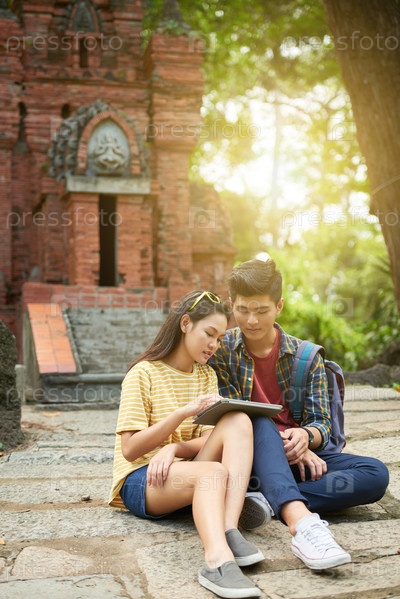 Туристы с цифровым планшетом