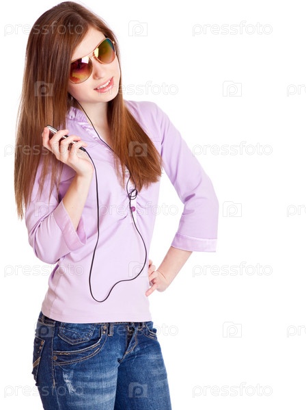 Девушка слушает mp3-плеер
