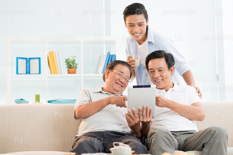 Семья с цифровым планшетом