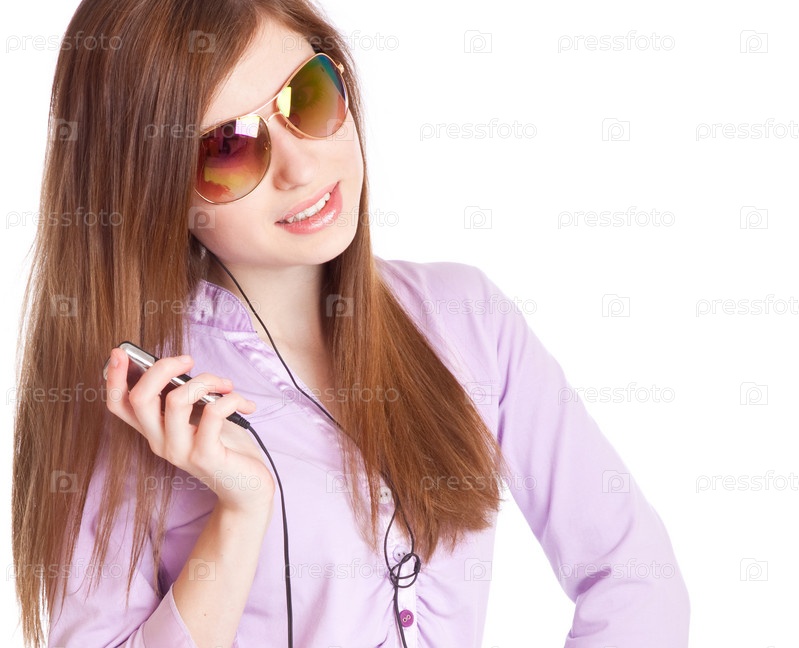 Девушка слушает mp3-плеер