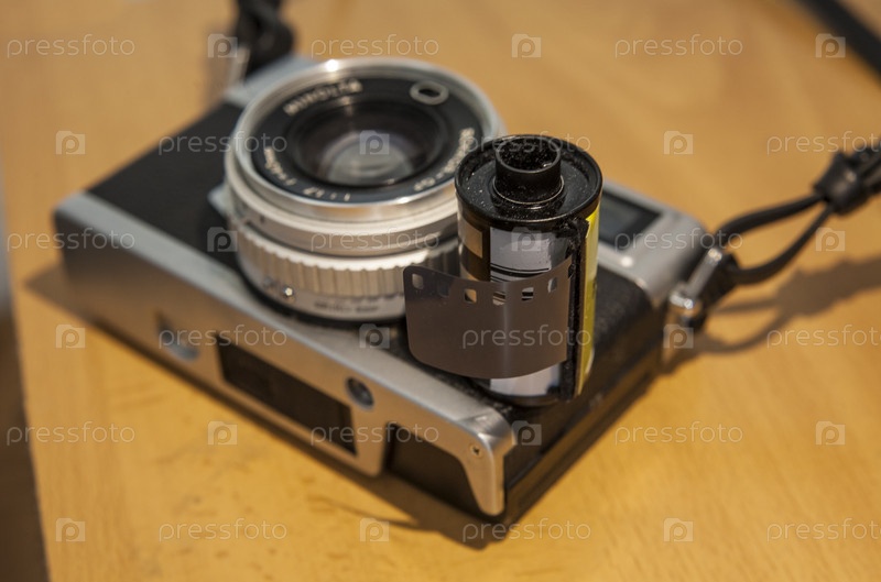 Старый зеркальный фотоаппарат с фотопленкой