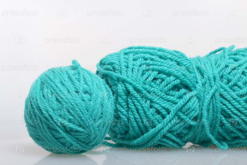 Клубок ниток для вязания изумрудного цвета на белом фоне