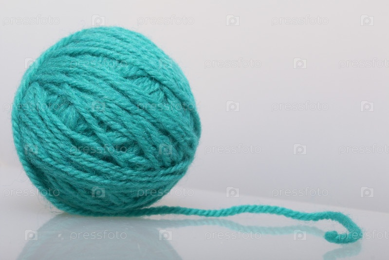 Клубок ниток для вязания изумрудного цвета на белом фоне