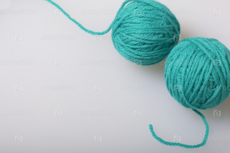 Клубки ниток для вязания изумрудного цвета на белом фоне