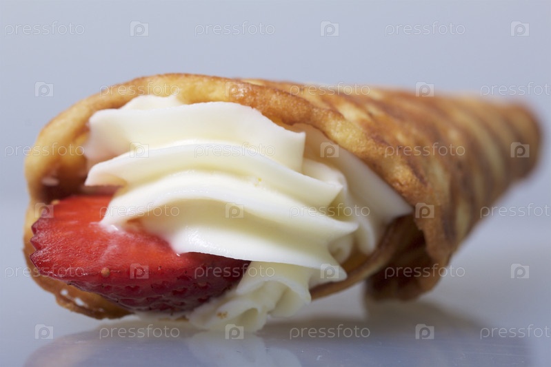 Вафельные рожки с кремом и клубникой